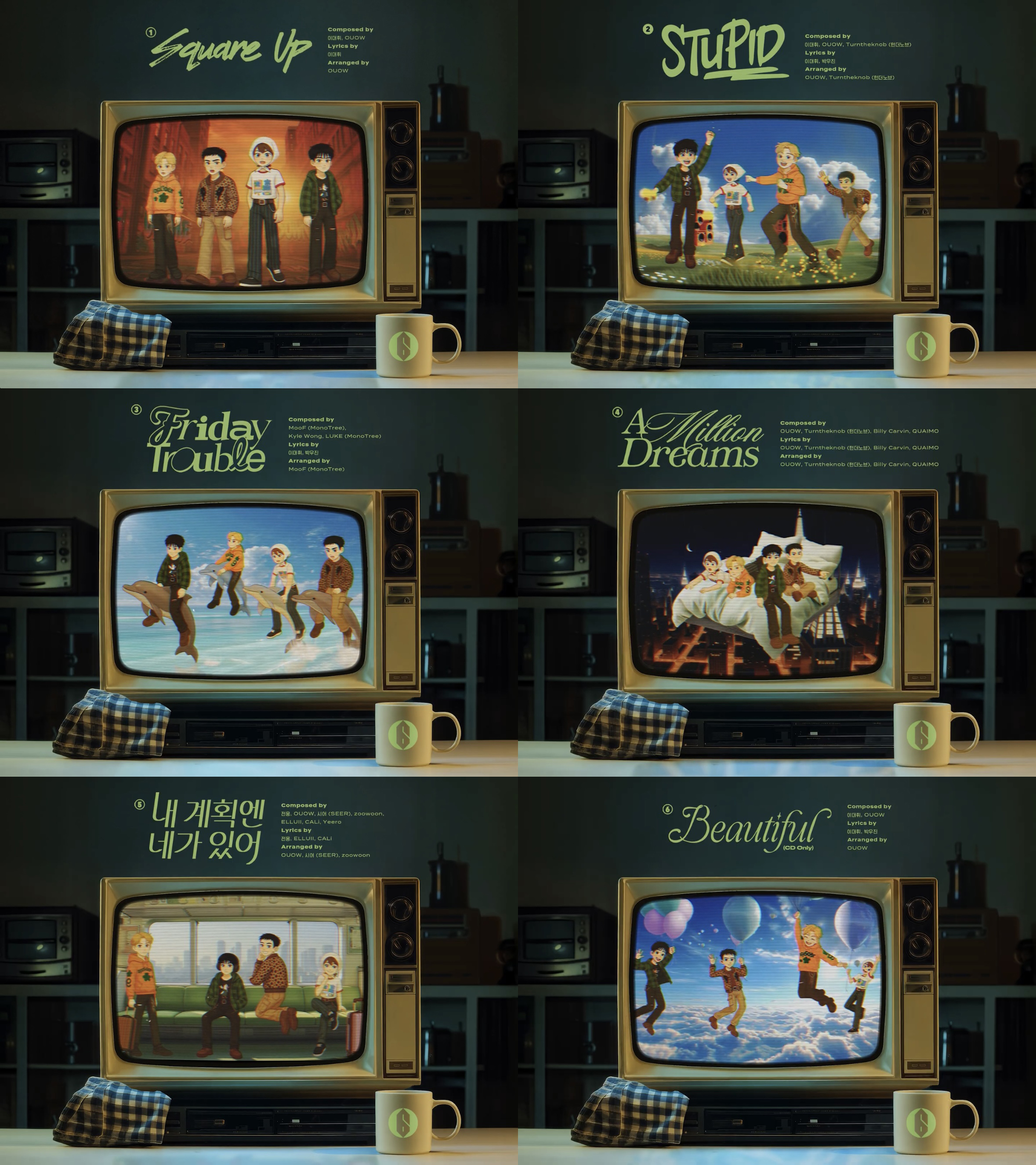 AB6IX의 새 앨범에는 타이틀곡 ‘STUPID(스투핏)’을 포함하여 ‘Square Up(스퀘어 업)’, ‘Friday Trouble(프라이데이 트러블)’, ‘A Million Dreams(어 밀리언 드림즈)’, ‘내 계획엔 네가 있어’, ‘Beautiful(뷰티풀)’까지 총 6곡이 수록되었다.